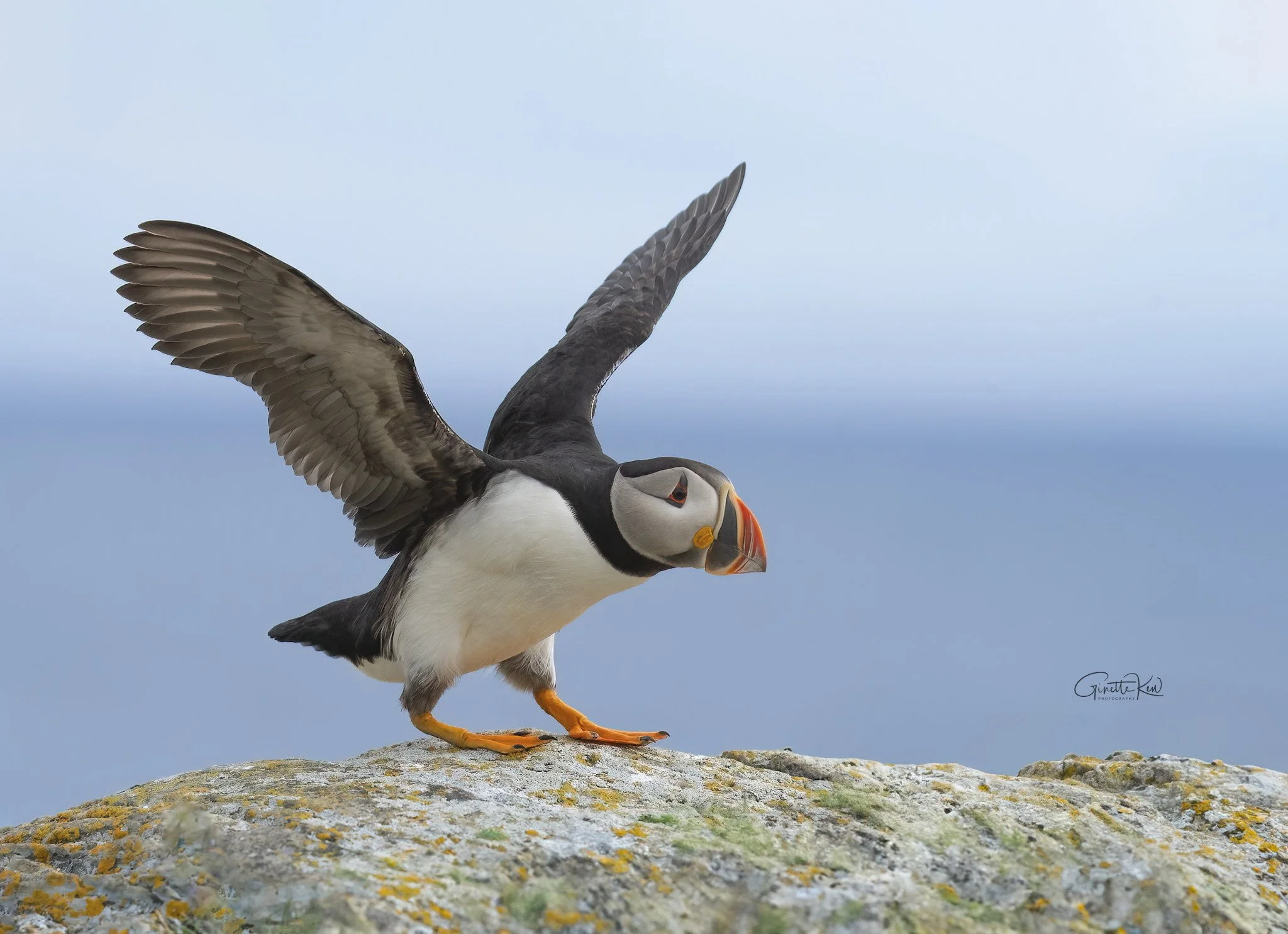 Filled with excitement and anticipation, I arrived in the tiny town of Elliston (population: 315) one early July morning ready to meet these beautiful birds known as ‘parrots of the sea’ thanks to their large, colourful bills and waddling gait. Little did I know how much they would steal my heart! To my delight, one of the very first puffins I laid eyes upon was walking right towards me with a flower in its mouth, as if to welcome me to the island. In a complete state of glee, I sat watching and photographing them for hours while they went about their day, waddling around, chatting with each other, rubbing their beaks together, and taking flight. I could not get enough of these sweet, charismatic birds – it’s not even been a year since my trip and I already can’t wait to get back and visit them again!